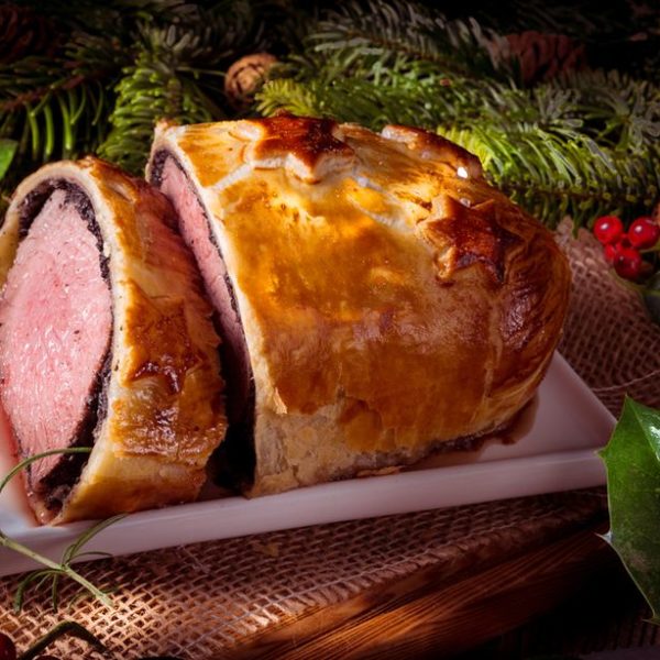 These are hand made in the kitchen fresh to order by our Chef. Larder trimmed 170g fillet steaks are prepared by the butchers before being passed to the kitchen. The fillets are seasoned and seared before being smothered duxelle and wrapped in lattice top puff pastry. Conveniently supplied in an aluminium foil, lined with silicon non-stick paper, and pre glazed pastry ready to be placed into your oven. The advantage of the Individual portion is that each wellington can be baked to your preference - either rare, medium or well done. However the whole wellington makes for a very impressive centre piece to any occasion.